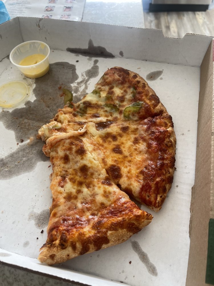 Buffalo chicken, mozzarella and romano cheeses & ranch dressing.