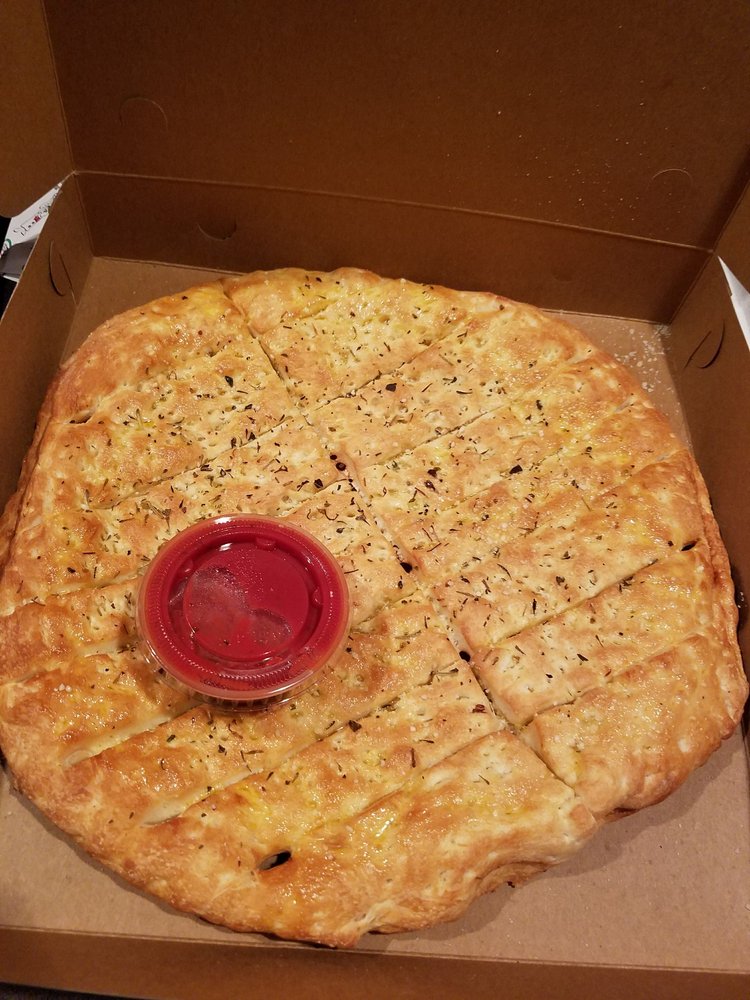 16 piece garlic cheese bread with mozzarella and romano cheese.